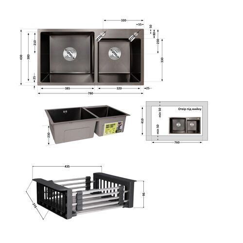 Комплектація | Мийка (LDH7843BPVD45586), кошик (LIDZK01B) |