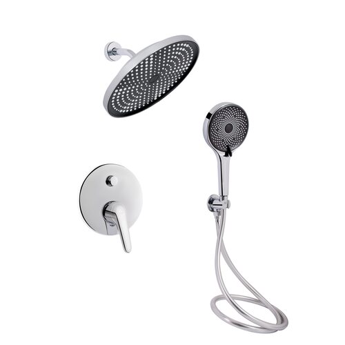 Колір | Хром – змішувач, лійка для ручного душу, шланг, підключення; хром / чорний - лійка для верхнього душу |