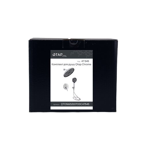 Комплектація | Змішувач (QTOS6212107ODC), лійка для ручного душу (QTRUC125CRM45952), лійка для верхнього душу (QTHLA107CRM45948), шланг (QTHADPVC200C), підключення (QTCRMBH030) |