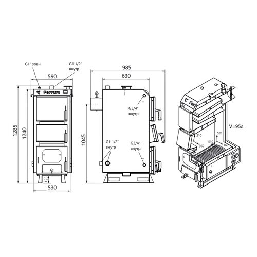 Габаритні розміри топки (ВхШхГ), мм | 520x360x510 |