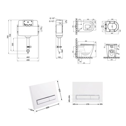 Габаритні розміри виробу (ШхГхВ), мм | 560х360х410 - унітаз; 490х152х765 - інсталяційний бачок; 220х13х150 - панель змиву |