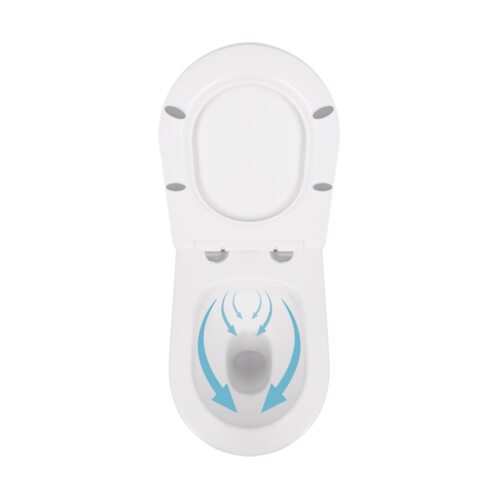 Зливний вихід | Отвори біля основи безободкової чаші з технологією змиву Rimless |