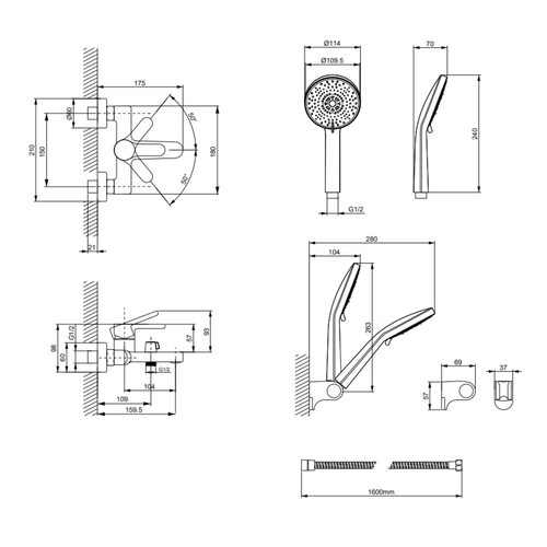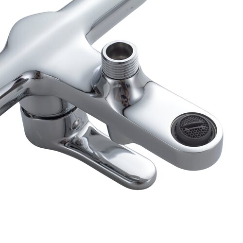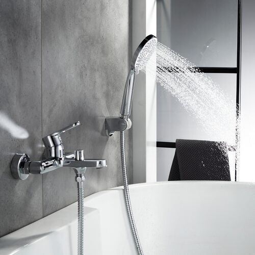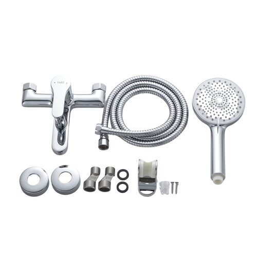 Комплектація Змішувач, душовий шланг, ручна лійка, декоративні чашки (розетки) – 2 шт, ексцентрики (перехідники) – 2 шт, ущільнювальні прокладки – 2 шт, тримач для душу, кріплення для тримача.