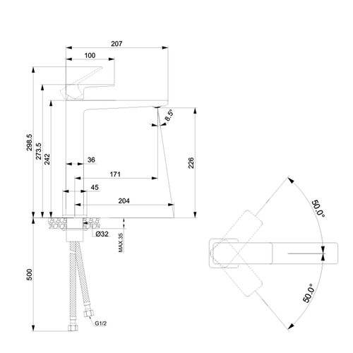 Комплектація | Змішувач, гнучкі підведення - 2 шт, монтажний циліндр, кріпильна гайка, кільця ущільнювачів - 3 шт, металева шайба. |