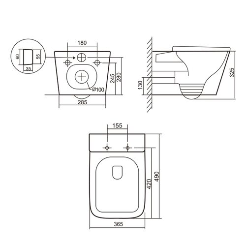 | Зливний вихід | Один отвір справа біля краю безобідкової чаші з технологією змиву Tornado 3 |