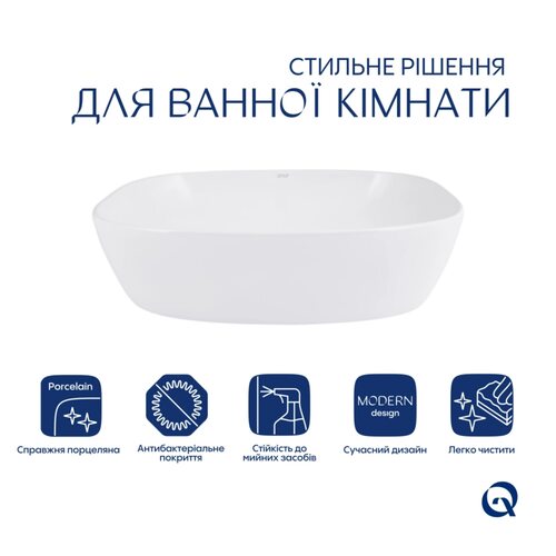 Комплект Qtap Cardinal: Овальна накладна раковина стане елегантним акцентом у ванній кімнаті. Гладка біла поверхня візуально розширює простір, а донний клапан Pop-up PU02 забезпечує надійну роботу зливу.