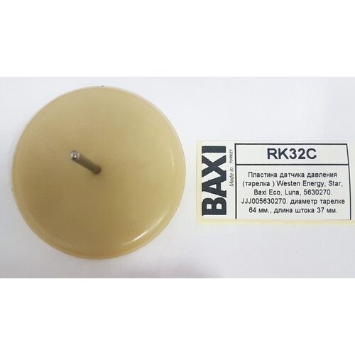 Пластина датчика давления (тарелка ) Westen Energy, Star, Baxi Eco, Luna, 5630270. JJJ005630270. диаметр тарелке 64 мм., длина штока 37 мм.