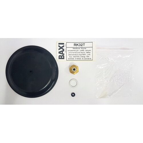 Мембрана, Втулка направляющая, шайба, сальник, уплотнительное масло. Набор ремкомплекта для BAXI, Luna, Eco, WESTEN, Energy, Star. 5405330. 5160620. В комплекте идет: ME10T, GS11T, RK27Z, и DR11T. Диаметр мембрана 83 мм.