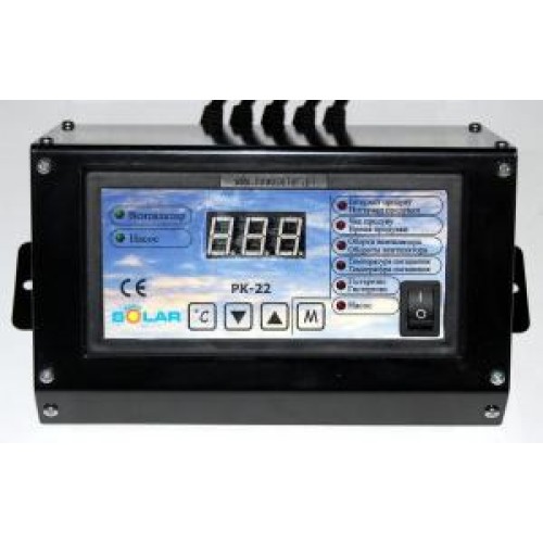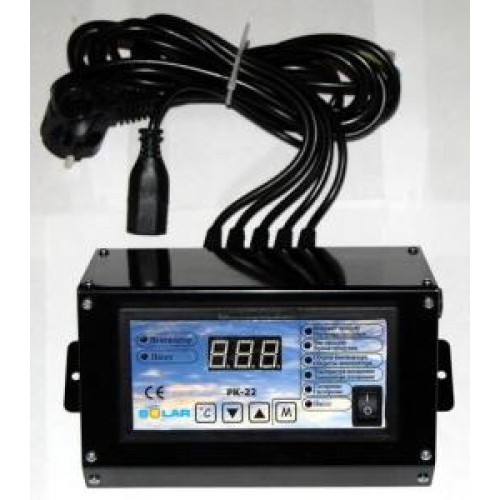 Контроллер Nowosolar РК-22 LUX (наружное размещение) в металлическом корпусе управляет работой нагнетательного вентилятора и насоса центрального отопления. Имеет функцию продувки – когда температура выше указанной вентилятор периодически выключается, через время указанное пользователем. Время работы и перерыв можно сменить в любой момент. Контроллер имеет 8 – уровней силы нагнетания. Контроллер изготавливается в нескольких вариантах, в зависимости от типа котла. Программа рассчитывается индивидуально под каждого заказчика; длина проводов подбирается таким образом, что бы монтаж был легким и быстрым.