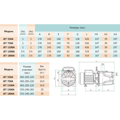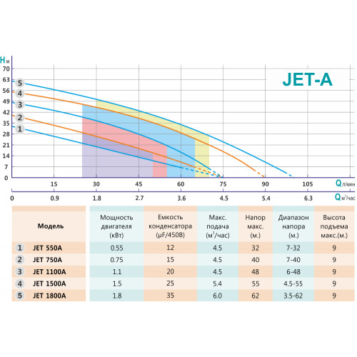 Поверхностные моноблочные самовсасывающие насосы JET со встроенным эжектором и одним рабочим колесом центробежного типа. Насосы JET предназначены для перекачивания чистой пресной воды из колодцев, скважин, природных водоемов с глубиной залегания воды до 9 метров.