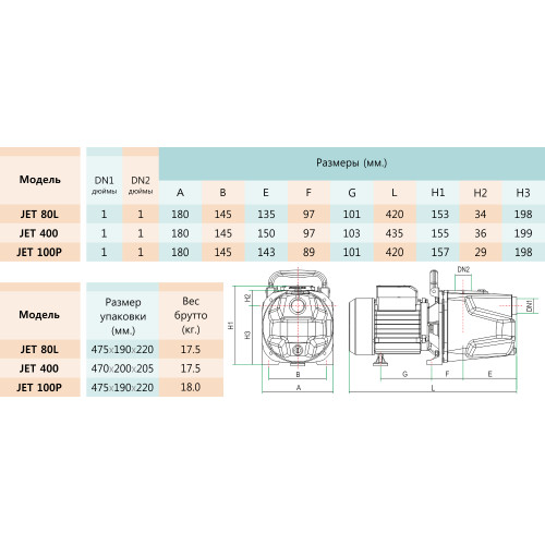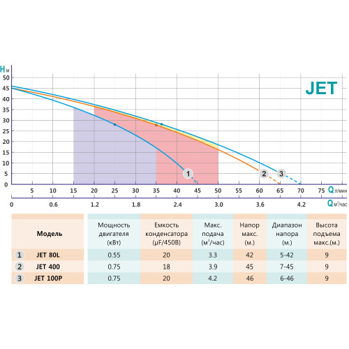Поверхностные моноблочные самовсасывающие насосы JET со встроенным эжектором и одним рабочим колесом центробежного типа. Насосы JET предназначены для перекачивания чистой пресной воды из колодцев, скважин, природных водоемов с глубиной залегания воды до 9 метров.