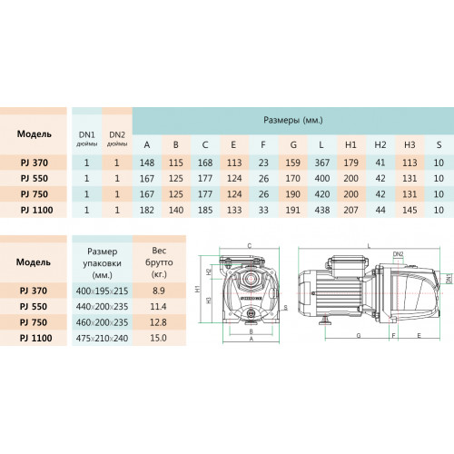Поверхностные моноблочные самовсасывающие насосы PJ со встроенным эжекторным механизмом и одним рабочим колесом центробежного типа. Насосы серии PJ предназначены для перекачивания чистой пресной воды из колодцев, скважин, природных водоемов с глубиной залегания воды до 9 метров.