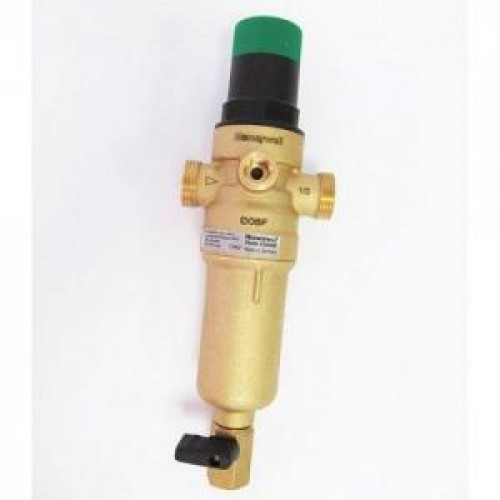 Фильтры тонкой очистки с обратной промывкой серии Honeywell FF06 служат для удаления из воды механических примесей размером более 100 мкм таких как ржавчина, песок, пенька. С помощью крана, установленного внизу фильтра, данный водоочиститель можно промывать. Корпус из латуни. Сам фильтр Honeywell FF06 изготавливается в нескольких исполнениях для холодной и горячей воды с резьбой от 1/2 до 1 1/4''. Корпус фильтра во всех исполнениях имеет внутреннюю и наружную резьбу соответствующего размера с двух сторон. Максимальной рабочее давление до 16 бар для холодной воды, для горячей - 25 бар. Фильтр снабжен краном, расположенным в нижней части колбы.Фильтры Honeywell FF06 в различных исполнениях с ячейкой 100 мкм или 0,1 мм.Техническое обслуживание фильтров, например, замена сетчатого элемента или колбы, возможна без демонтажа водоочистителя из трубопровода.Принцип действия:В режиме фильтрации вода проходит через сетчатый фильтрующий элемент в направлении снаружи внутрь и в очищенном виде поступает на выход фильтра. Для включения режима промывки нужно открыть шаровой клапан. При этом поток воды под полным входным давлением смывает с поверхности сетки застрявшие частицы и, захватывая мусор на дне колбы, удаляется за пределы фильтра. В процессе промывки возможна подача очищенной воды к потребителю с несколько пониженным давлением, но это несколько снижает эффективность очистки. Режим промывки выключается простым поворотом ручки шарового клапанТип: комбинированный компактный фильтр механической очистки для холодной воды.Размер подключения: 3/4″Рейтинг фильтрации: 100 мкмРабочее положение: устанавливается в горизонтальном трубопроводе чашей внизПрозрачная чашаРабочая температура: до 30 °СРабочая среда: водаДавление на входе: до 16,0 барДавление на выходе: от 1,5 до 6,0 барОсобенностиПростой монтажКомпактные размерыПодача отфильтрованной воды осуществляется непрерывно, даже в процессе промывкиПрочная чаша из ударопрочных материаловПростое обслуживание и замена сетчатого фильтрующего элементаКорпус с внутренней и наружной резьбойНадежная и проверенная конструкция от немецкой компании HoneywellИзделия соответствуют требованиям DIN/DVGVИнструкция по монтажу:Можно монтировать как на металлические, так и на пластиковые трубы.Устройство устанавливается на горизонтальном участке трубопровода чашей вниз. Это положение обеспечивает максимальную эффективность фильтрации.Устанавливается за водосчетчиком после запорных клапанов . Это позволит обслуживать устройство без демонтажа из трубопровода.Обеспечьте свободный доступ к фильтру для возможности отслеживания степени загрязнения через прозрачную чашу и проведения технического обслуживания.Рекомендуется после комбинированного фильтра оставлять прямолинейный стабилизирующий участок трубопровода длиной не менее пятикратного номинала присоединительного размера.