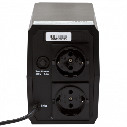 линейно-интерактивный тип, батарея - 12V/7,5Ah, мощность 437Вт микропроцессорное управление, функция стабилизации напряжения 145-290V (выходное напряжение - 220V±10%), 3 ступ., 2 евророзетки, функции холодного старта и повторного запуска при восстановлении напряжения в сети, защита от короткого замыкания, скачков, перегрузки, разряда и избыточного заряда батарей, автоподзарядка в выключенном состоянии. Пластмассовый корпус. Цвет -Черный. Габариты: Д310хШ92хВ140 мм Вес: 4.37кг