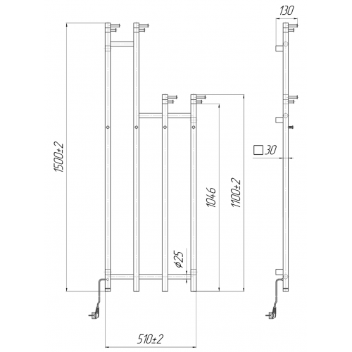 Электрический полотенцесушитель Марио Ray Cubo Family-I 1500x510