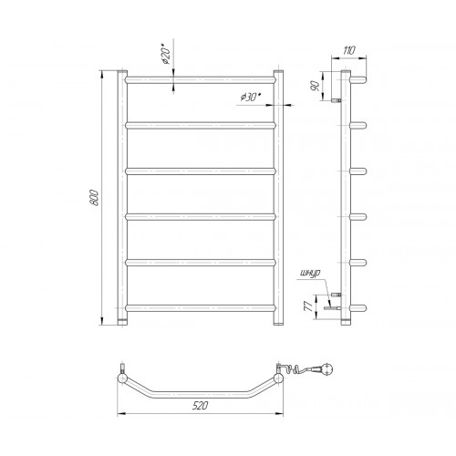 Электрический полотенцесушитель Трапеция HP-I 800x530 номинальная мощность 90W, состоит из 6 ребер. Полотенцесушитель Трапеция HP-I производсветнного предприятия Mario изготовлен из нержавеющей стали. Максимальная температура нагрева 60 °C. Для экономии электроенергии в конструкции предусмотрен регулятор температуры. Степень пыле-електрозащиты IP44.