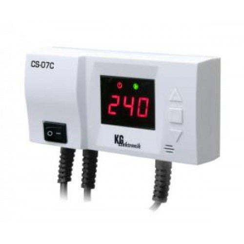 Автоматика CS-07С может быть использована как термостат или контроллер напольного насоса. Задание регулятора заключается в запуске насоса в том случае, если температура превысит желаемый показатель, а также в выключнеии насоса в случае охлаждения котла (в результате выключения).Позволяет избежать работу насоса баз надобности и сэкономить электроэнергию (экономия зависит от степени эксплуатации котла, может составить даже до 60%), а также продлить срок служби насоса. Благодаря этому повышается уровень надежности насоса и понижаются расходы, связанные с эксплуатацией.Контроллер оборудован системой предотращающей застой насоса ЦО - так называемым анти-стопом. Приблизительно каждые 15 дней насос включается на 15 секунд. Дополнительной защитой системы является функция защиты от замерзания воды (антифриз). При падении температуры ниже 5oC насос ЦО работает напрерывно.Заданную температуру запуска насоса можно изменить путем придержания кнопки (вход в меню), на дисплее должна высветиться мигающая буква С, в этот момент можно изменить настройки температуры с помощью кнопок . По истечении нескольки секунд контроллер сам переходит в рабочий режим и будет отображать на дисплее текущую температуру в котле.Ручная работа. Данная функция позволяет проверить исправность подключенного насоса путем одновременного нажатия на кнопки . Повторное нажатие на кнопки выключит насос. Гистерезис Между температурой входа в цикл запуска контроллера и температурой возврата в режим ожидания существует разница. Гистерезис контроллера CS-07 составляет 2 градуса.К примеру, после установки температуры 50oC насос запускается после превышения температуры 50oC, а выключается - когда температура упадет до 48oC. Сигнализация Контроллер оборудован звуковой сигнализацией слишком высокой температуры в котле 90oC