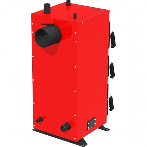 Котел имеет эффективность на уровне 85% благодаря большому теплообменнику, который находится в верхней его части. Время работы на одной загрузке около 10-15 часов (на угле). На дровах этот показатель будет достигать 5-6 часов.