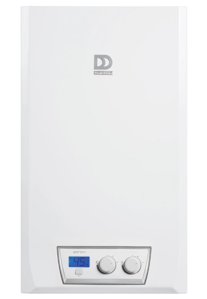 Газовый котел Demrad Atron. Это навесной газовый котел, предназначенный для отопления и нагрева воды. Газовый котел Demrad Atron можно использовать как в частном доме, так и в квартире. КПД котла Демрад, составляющий более 93 %, позволяет экономить затраты на отопление в 3-4 раза по сравнению с центральным отоплением;