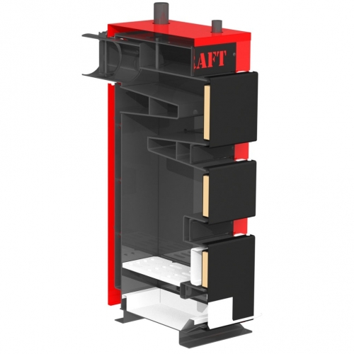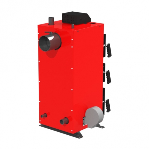 Котел имеет эффективность на уровне 85% благодаря большому теплообменнику, который находится в верхней его части. Время работы на одной загрузке около 10-15 часов (на угле). На дровах этот показатель будет достигать 5-6 часов.