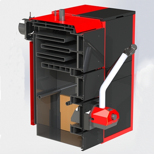 Пеллетные котлы KRAFT серии F строятся на базе модели KRAFT L которые отличаются своим увеличенным теплообменником. Сжигание топлива происходит в горелке факельного типа. Она может быть, как украинского, так и польского производства (на выбор заказчика).