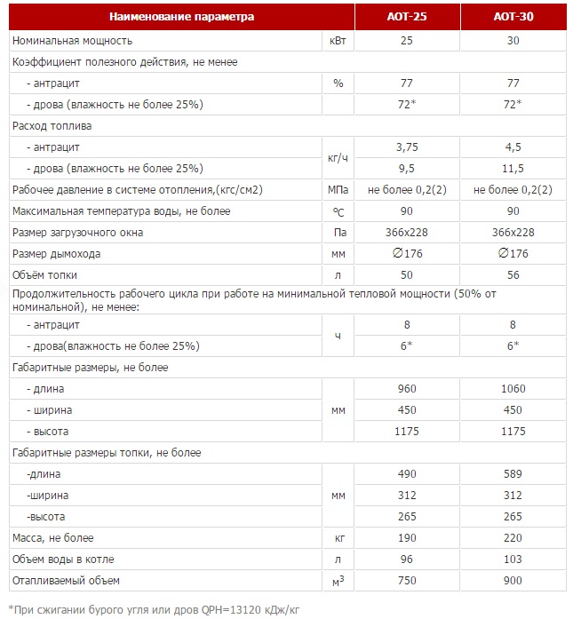 Твердотопливный котёл АОТ-30 предназначены для обогрева помещений, оборудованных системой водяного отопления с естественной или принудительной циркуляцией теплоносителя.