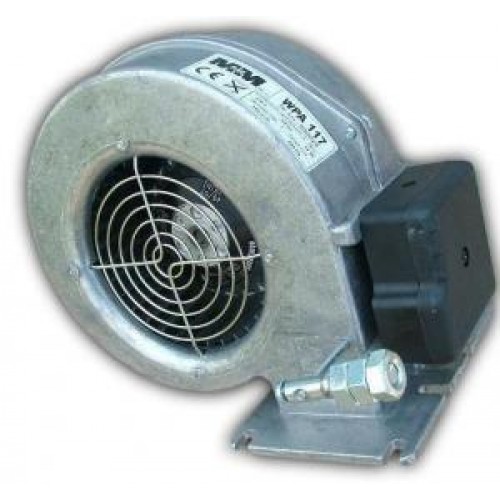 Вентилятор M + M WPA 120 рекомендован для твердотопливного котла мощностью от 25 до 50 кВтПринудительная подача воздуха необходима в моменты, когда нужно усилить горение: розжиг котла; некачественное топливо, которое трудно сжигать без наддува; топливо с низким содержанием летучих веществ (антрацит, кокс) которое горит коротким пламенем и плохо разжигается; необходимость "раскочегарить" котёл для прогрева помещения. Наличие вентилятора позволяет не зависеть от тяги в трубе и колебаний погоды, безветренных периодов. В быту зачастую для розжига котла применяют пылесос включенный на подачу воздуха и засовывают трубу под колосники.Для решения таких задач есть дополнительный модуль - вентилятор принудительной подачи воздуха. Его лучше использовать с модулем "Микропроцессорный регулятор", такой тандем позволяет включать и выключать наддув в зависимости от температуры в помещении. Вы самостоятельно задаёте параметры, например: "Хочу, чтобы батареи были 60-65°C", датчик микропроцессора отслеживает температуру, как только вода остывает ниже 60°C - включается вентилятор, к топливу поступает больше воздуха, усиливается горение и выделяется больше тепла, вода в котле разогревается, как только вода нагреется выше 65°C, микропроцессор выключит вентилятор, котёл перейдёт в рабочий режим горения.Вентилятор может быть установлен в момент покупки котла, или в любой момент после установки котла в систему отопления. Для монтажа вентилятора нужно открутить два винта удерживающие шторку на дверце зольника, и вместо шторки, теми же винтами прикрутить рамку с вентилятором. Всё. Время монтажа - 2минуты. Монтаж микропроцессора - 10минут (смотрите здесь). Плюс подключить разъединители и вилку в розетку. итого за 15 минут котёл преобразован.Наддув можно применять:1. Первичный воздух - вентилятор на дверце зольника, наддув воздуха осуществляется ПОД колосники. Такой способ хорош для растопки, для топлива с коротким пламенем (антрацит, кокс) которое трудно разжечь; для топлива низкого качества (это не секрет, что сейчас могут продать даже землю вперемешку с углём), такое низкокачественное топливо использовать без вентилятора вообще невозможно либо с большими расходами из-за недожёга.2. Вторичный воздух - вентилятор на верхней дверце, наддув воздуха осуществляется НАД колосниками, в факел пламени. Такой способ подходит для топлива с большим содержанием летучих веществ, которое горит длинным пламенем: дрова, торф, различные брикеты, бурый уголь, каменный уголь марок Д (длиннопламенный), Г (газовый) и ДГ, так называемые курные угли. Вторичный воздух поступая прямо в факел горения способствует дожиганию выделившихся из топлива летучих веществ, что позволяет выжать из топлива максимум возможного.3. И то и другое одновременно. Для розжига и "трудного" топлива применяем поддув под колосники, для дров и длиннопламенного топлива - наддув в факел пламени. Для такого варианта нужно иметь две зольниковые дверцы.
