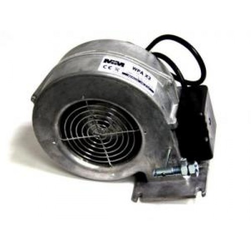 Вентилятор M + M WPA X2 рекомендован для твердотопливного котла мощностью от 25 до 50 кВтПринудительная подача воздуха необходима в моменты, когда нужно усилить горение: розжиг котла; некачественное топливо, которое трудно сжигать без наддува; топливо с низким содержанием летучих веществ (антрацит, кокс) которое горит коротким пламенем и плохо розжигается; необходимость "раскочегарить" котёл для прогрева помещения. Наличие вентилятора позволяет не зависить от тяги в трубе и колебаний погоды, безветренных периодов. В быту зачастую для розжига котла применяют пылесос включенный на подачу воздуха и засовывают трубу под колосники.Для решения таких задач есть дополнительный модуль - вентилятор принудительной подачи воздуха. Его лучше использовать с модулем "Микропроцессорный регулятор", такой тандем позволяет включать и выключать наддув в зависимости от температуры в помещении. Вы самостоятельно задаёте параметры, например: "Хочу, чтобы батареи были 60-65°C", датчик микропроцессора отслеживает температуру, как только вода остывает ниже 60°C - включается вентилятор, к топливу поступает больше воздуха, усиливается горение и выделяется больше тепла, вода в котле разогревается, как только вода нагреется выше 65°C, микропроцессор выключит вентилятор, котёл перейдёт в рабочий режим горения.Вентилятор может быть установлен в момент покупки котла, или в любой момент после установки котла в систему отопления. Для монтажа вентилятора нужно открутить два винта удерживающие шторку на дверце зольника, и вместо шторки, теми же винтами прикрутить рамку с вентилятором. Всё. Время монтажа - 2минуты. Монтаж микропроцессора - 10минут (смотрите здесь). Плюс подключить разъединители и вилку в розетку. итого за 15 минут котёл преобразован.Наддув можно применять:1. Первичный воздух - вентилятор на дверце зольника, наддув воздуха осуществляется ПОД колосники. Такой способ хорош для растопки, для топлива с коротким пламенем (антрацит, кокс) которое трудно разжечь; для топлива низкого качества (это не секрет, что сейчас могут продать даже землю вперемешку с углём), такое низкокачественное топливо использовать без вентилятора вообще невозможно либо с большими расходами из-за недожёга.2. Вторичный воздух - вентилятор на верхней дверце, наддув воздуха осуществляется НАД колосниками, в факел пламени. Такой способ подходит для топлива с большим содержанием летучих веществ, которое горит длинным пламенем: дрова, торф, различные брикеты, бурый уголь, каменный уголь марок Д (длиннопламенный), Г (газовый) и ДГ, так называемые курные угли. Вторичный воздух поступая прямо в факел горения способствует дожиганию выделившихся из топлива летучих веществ, что позволяет выжать из топлива максимум возможного.3. И то и другое одновременно. Для розжига и "трудного" топлива применяем поддув под колосники, для дров и длиннопламенного топлива - наддув в факел пламени. Для такого варианта нужно иметь две зольниковые дверцы.