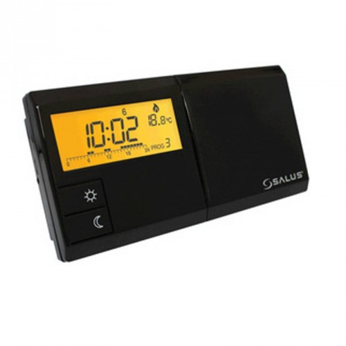 Недельный проводной программатор Salus 091FLPB черный - недельный программатор, который позволяет задать два уровня температуры: "экономный" и "комфортный" в диапазоне от +5 до +30°C с шагом 0,2°C. На каждый день недели присваивается своя программа (таймер), в которой назначаются временные периоды кратные 1 часу для поддержания либо "экономного", либо "комфортного" режимов. Т.о. теоретически можно переключаться до 24 раз в сутки или до 168 раз в неделю. На любой день недели можно задать одну из 9 программ (из них 6 заводских, т.е. "жестко" прописанных изготовителем и 3 пользовательских, которые можно настраивать по своему усмотрению). Терморегулятор имеет "сухие" контакты реле. Производитель предлагает эту же модель в черном цвете