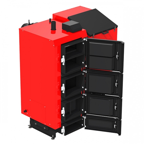 Для чистки теплообменника предусмотрена верхняя дверка котла, она открывает доступ ко всей плоскости теплообменника. Для этого в комплекте с котлом поставляется скребок и совок для удаления золы. Зола вычищается через нижнюю дверку с помощью совка. Две двери посередине котла открывают доступ к горелке: для ее розжига и обслуживания.