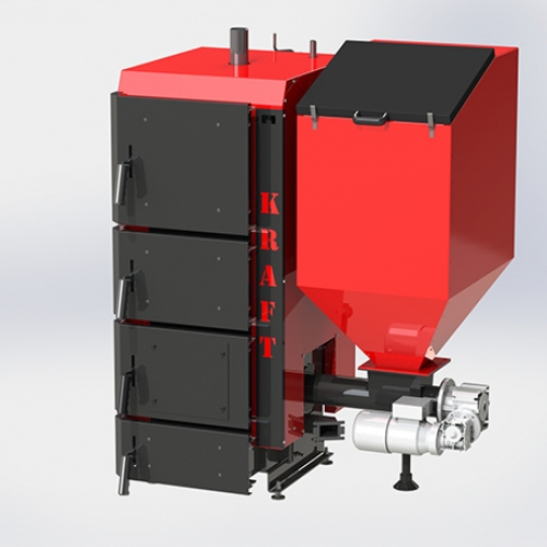 Пеллетный котел KRAFT серии R – это котел с автоматической подачей топлива, оборудованный польской горелкой ретортного типа Pancer Pol. Преимущество такой горелки в ее простоте, а главное – она работает как на пеллете, так и на мелкофракционном угле размером 5-25 мм.