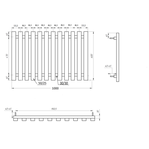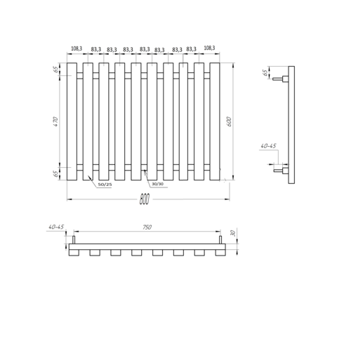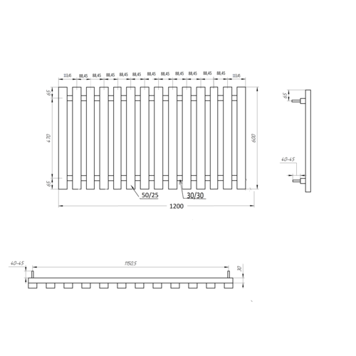 | Тепловіддача (при 60 С) | 750 вт, 910 вт, 1180 вт |
