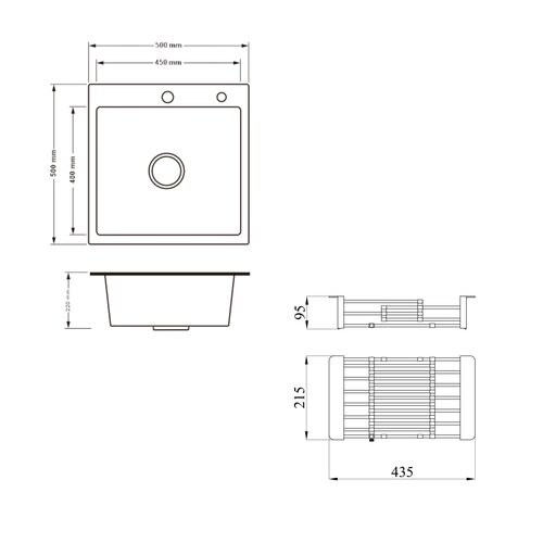 Комплект Lidz Handmade H5050HB Мийка для кухні інтегрована Decor Black PVD Honeycomb у комплекті з дозатором + Lidz K01G Корзина для кухонної мийки