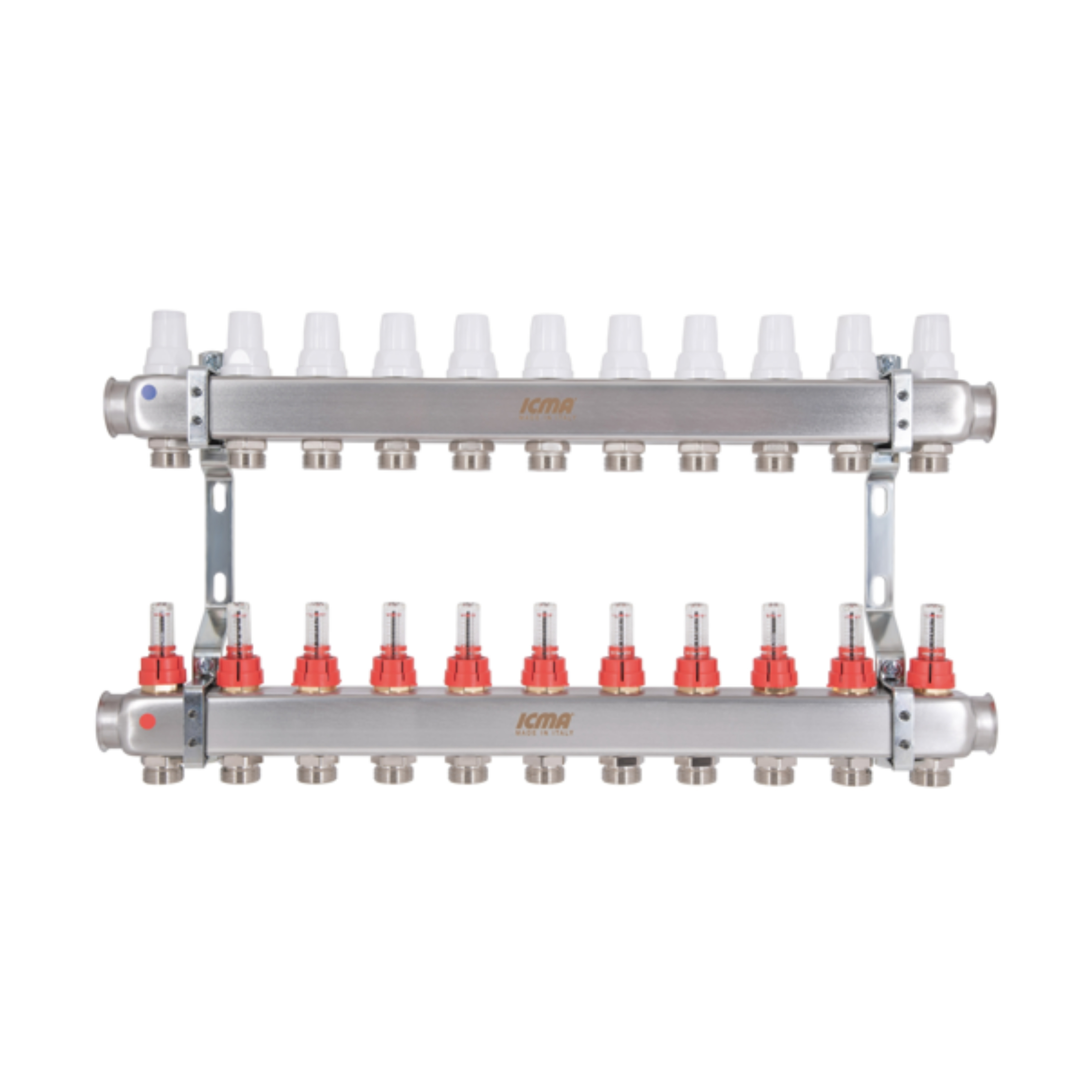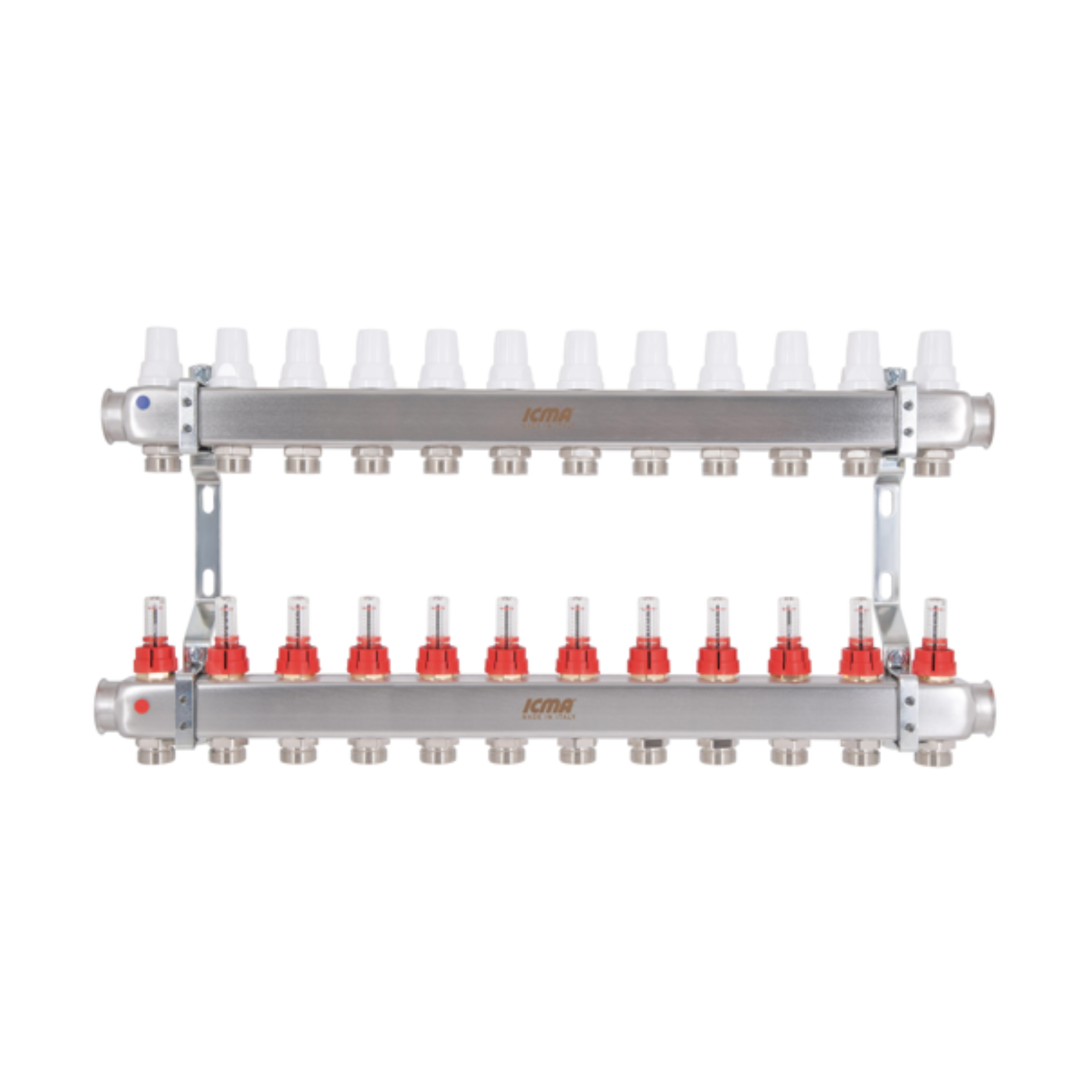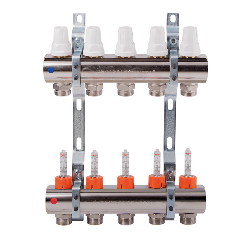 Колектор із нержавіючої сталі Icma № K073 з витратомірами забезпечує точний розподіл теплоносія в си..