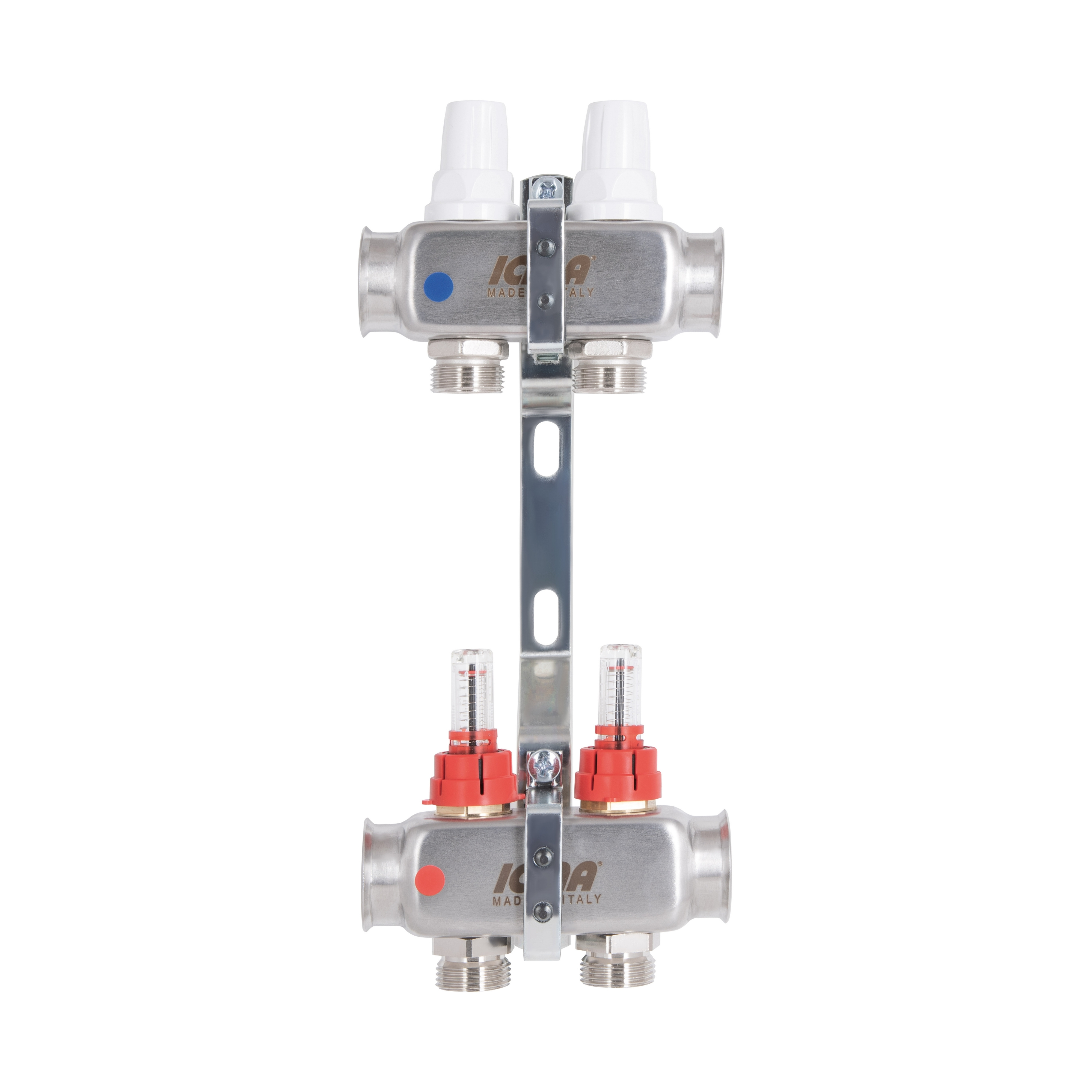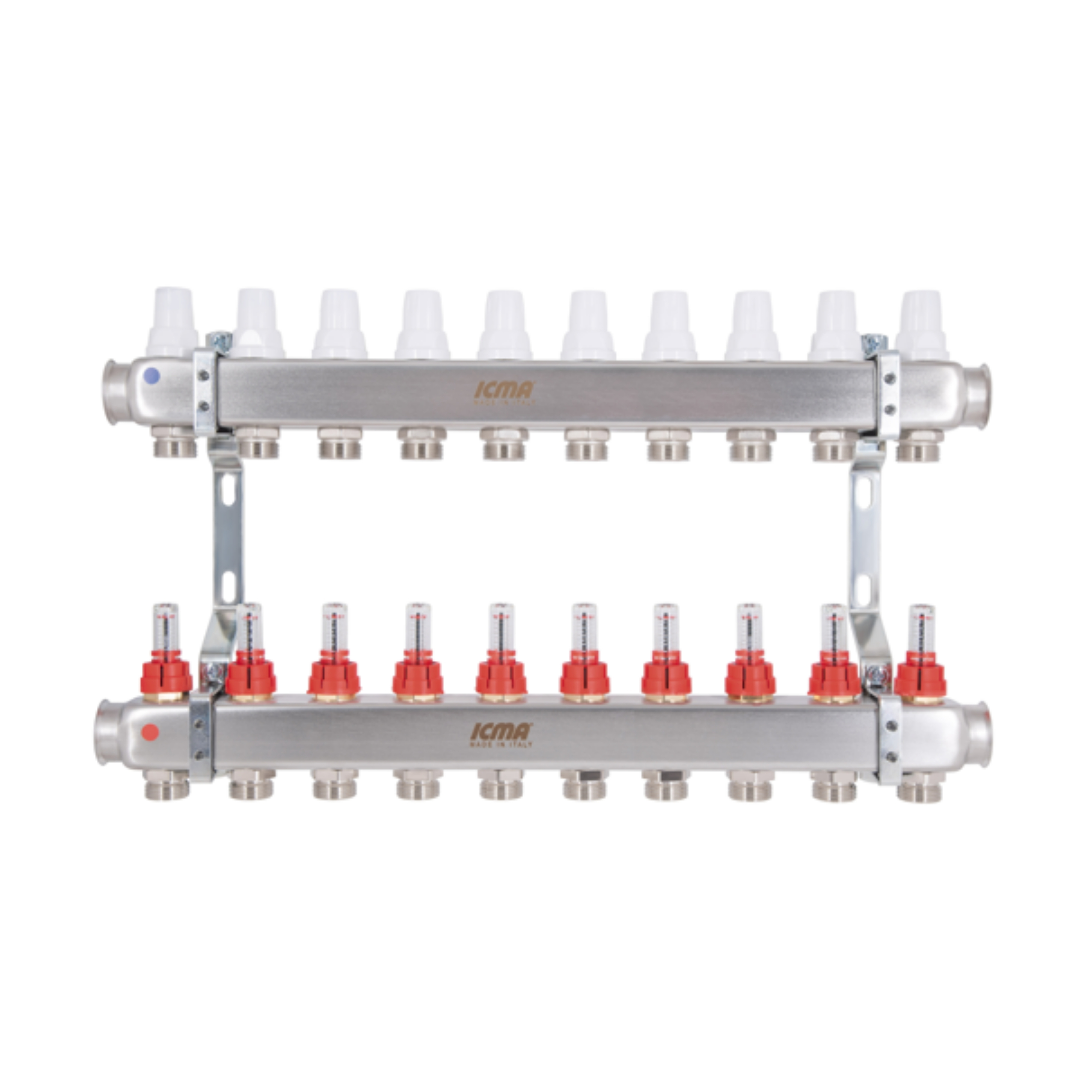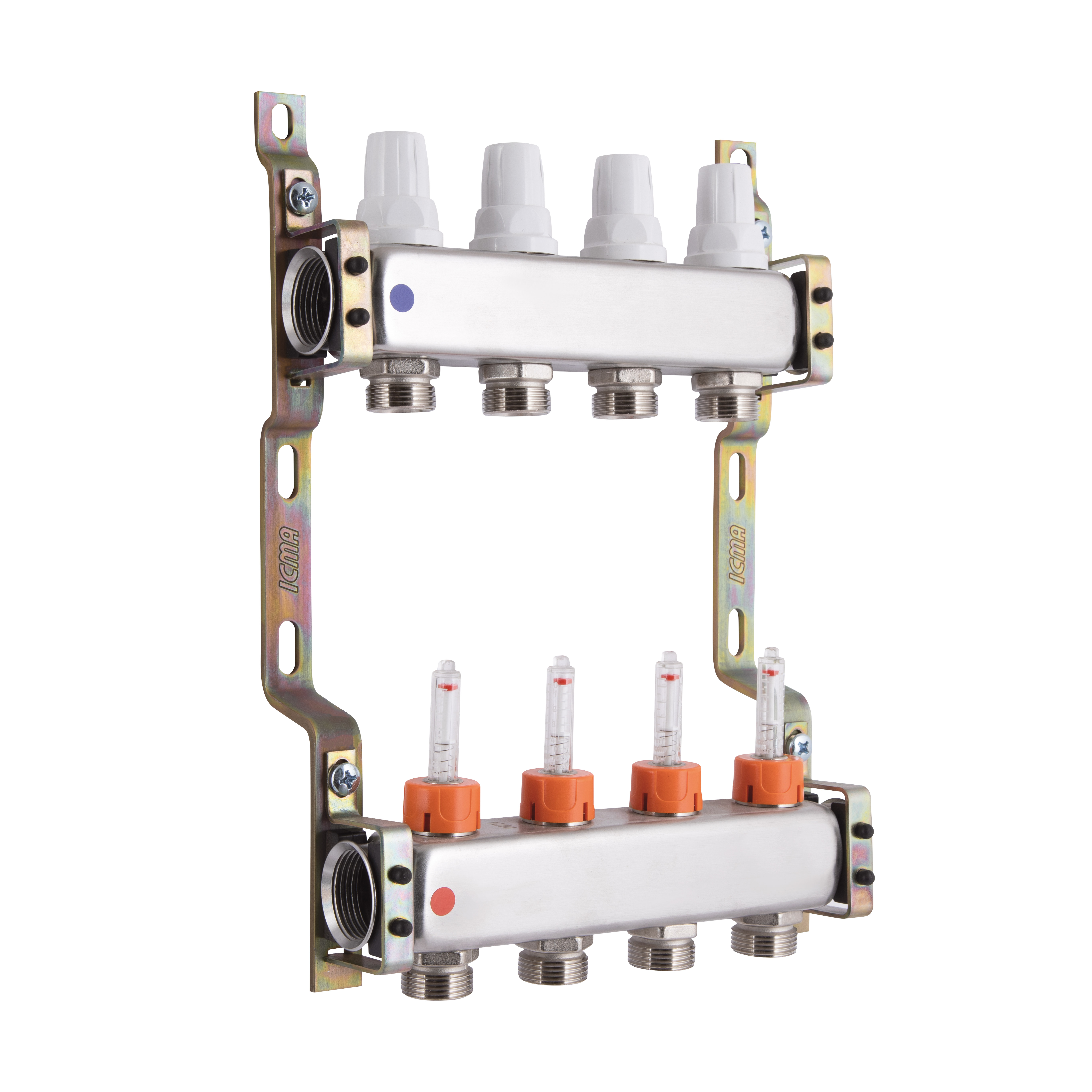 Колектор із нержавіючої сталі Icma № K073 з витратомірами забезпечує точний розподіл теплоносія в си..
