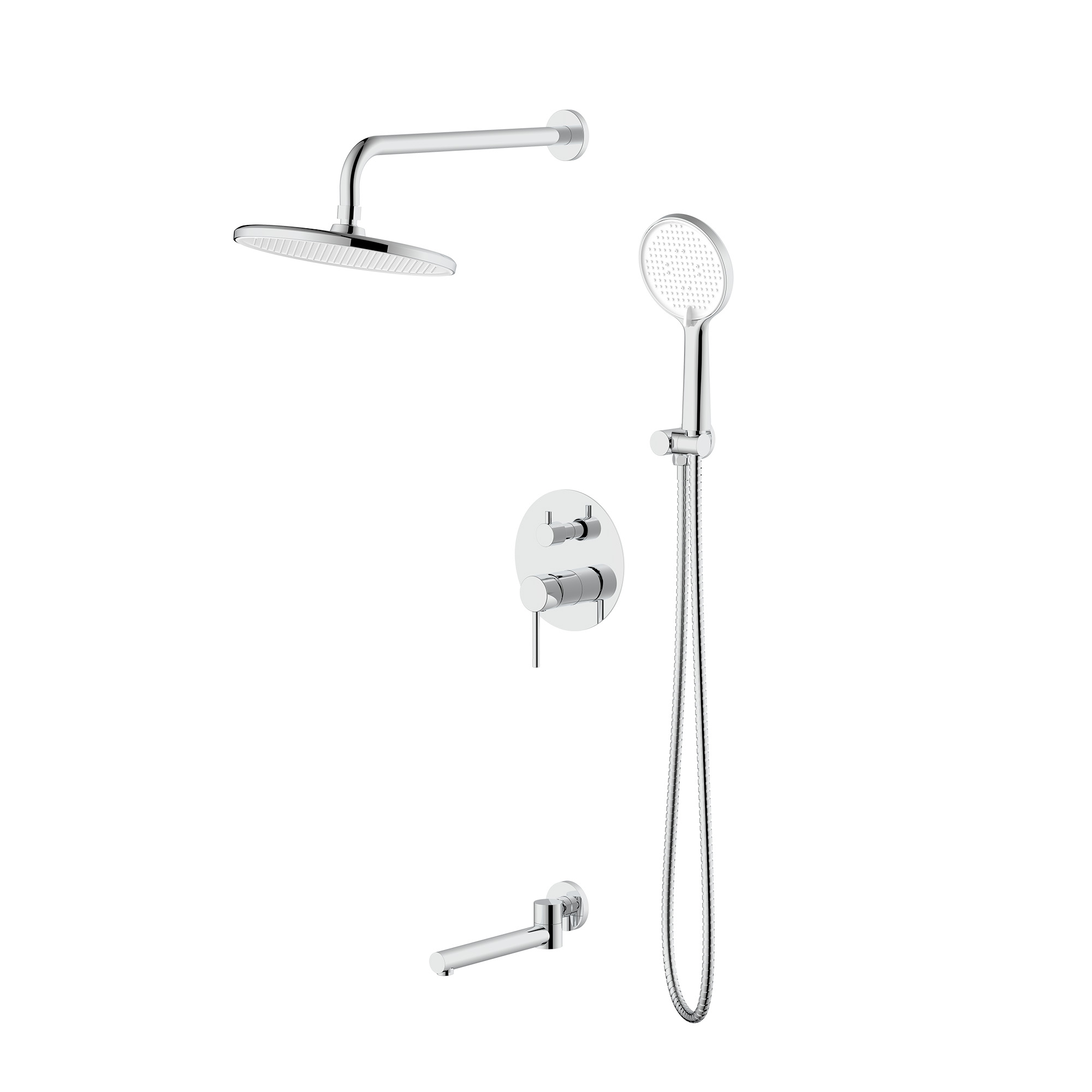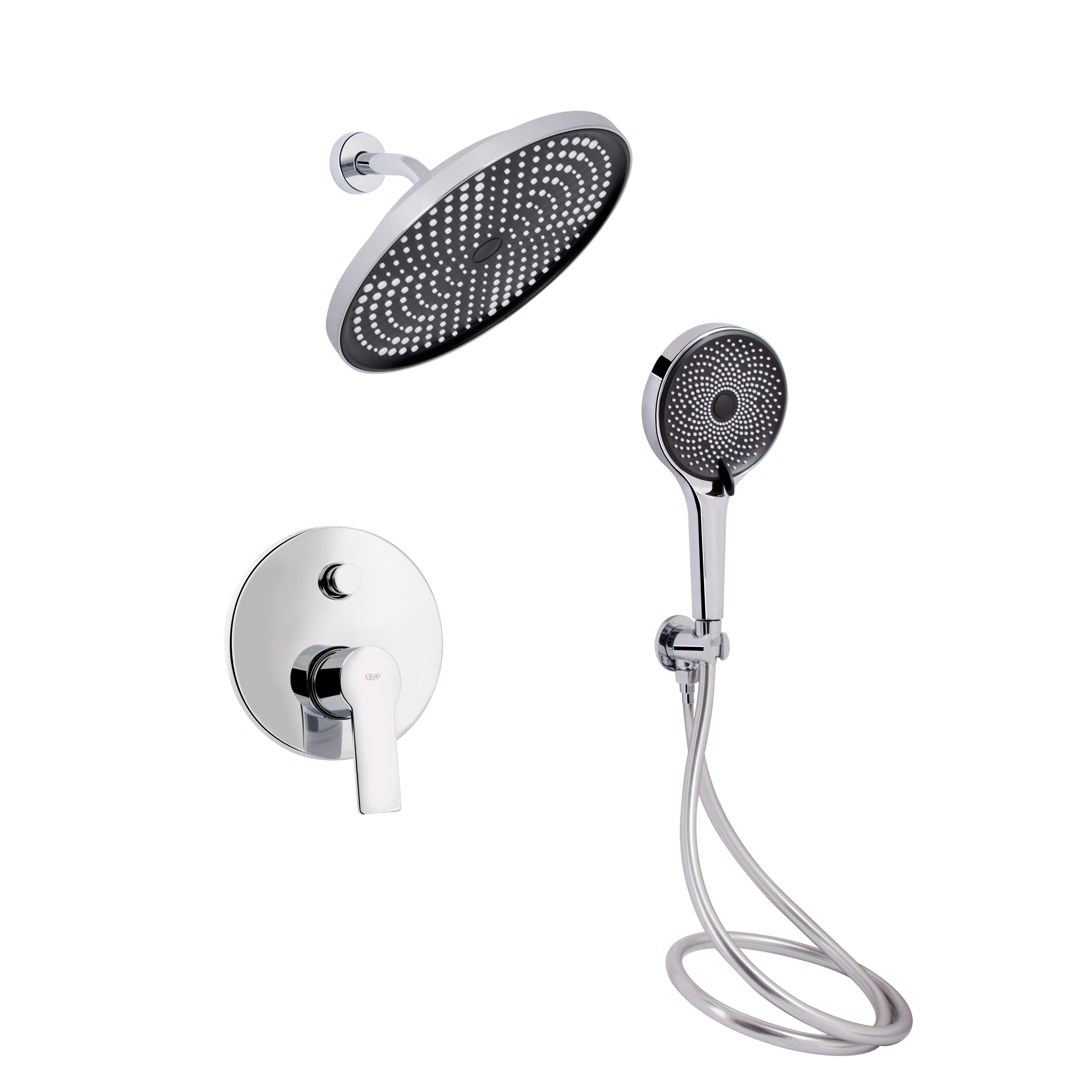 Комплект для душу Qtap Chrome складається із змішувача QTUST6216107ODC, двох сучасних лійок (QTRUC12..
