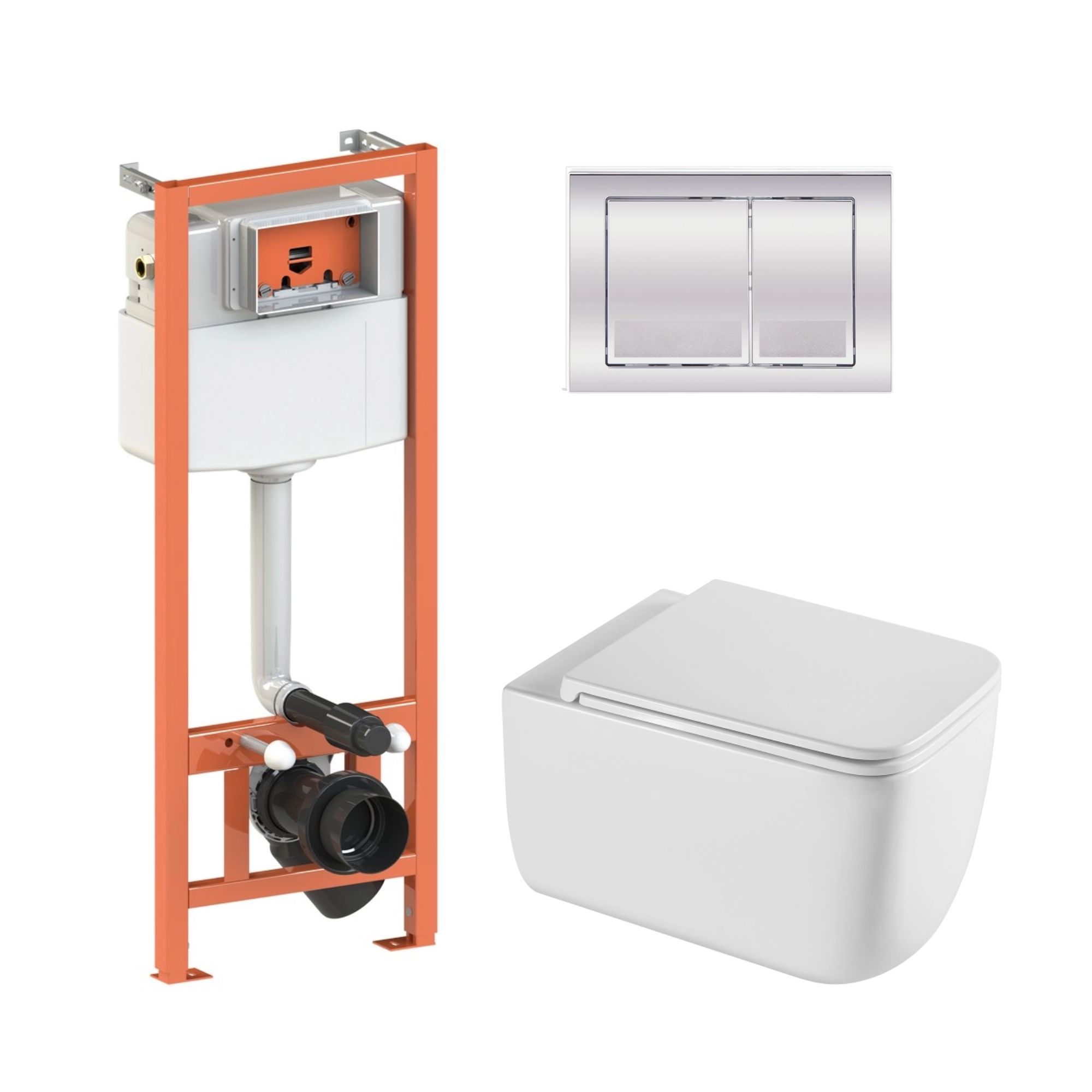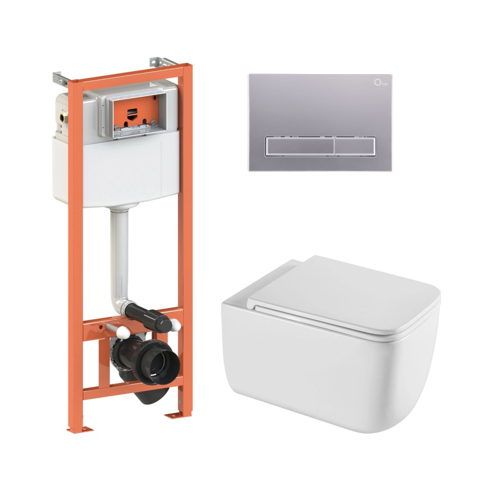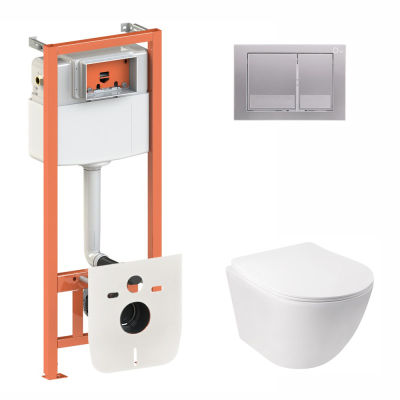 Комплект для ванної кімнати Qtap QT07335176W0133M425M06028CRM, що включає інсталяцію, унітаз і клаві..