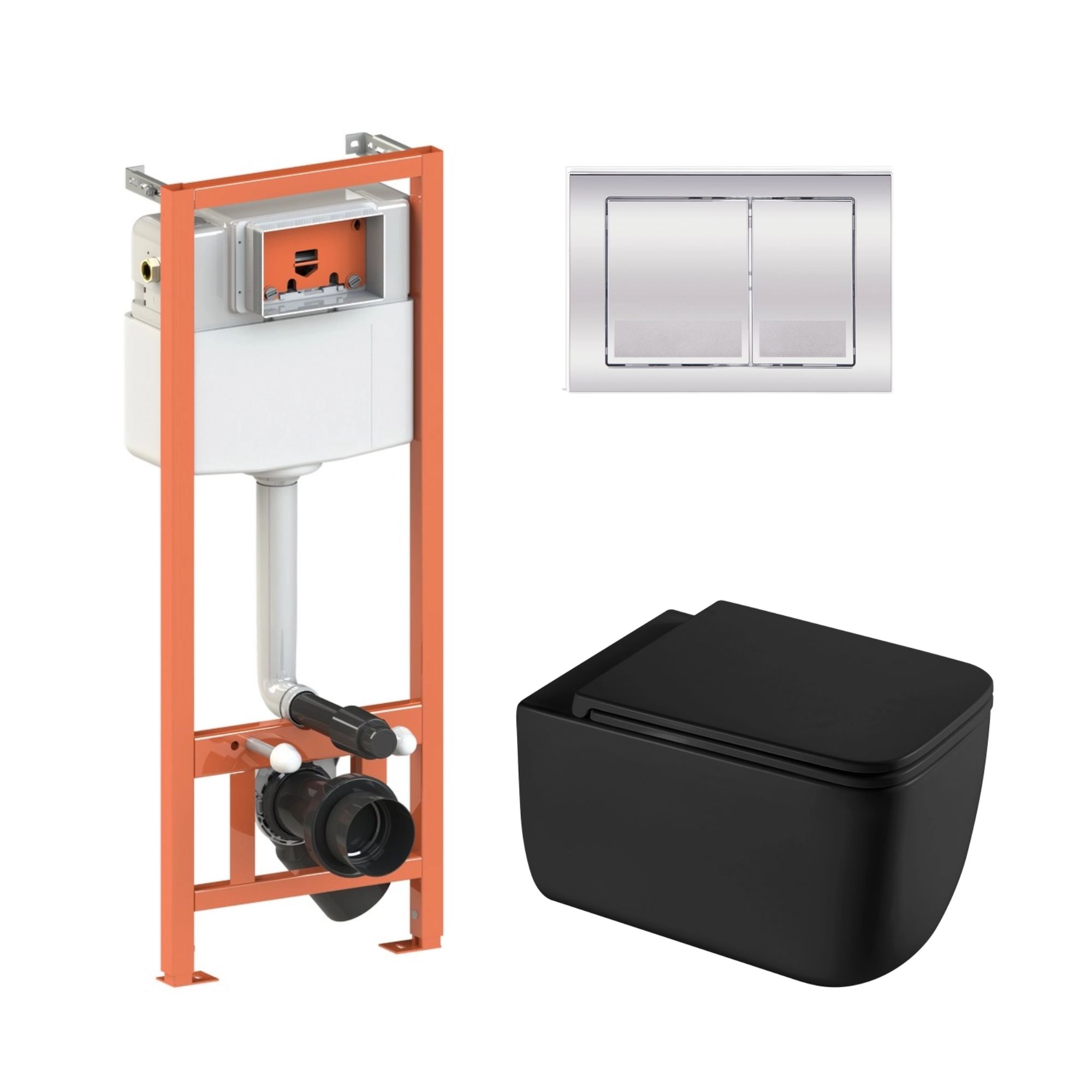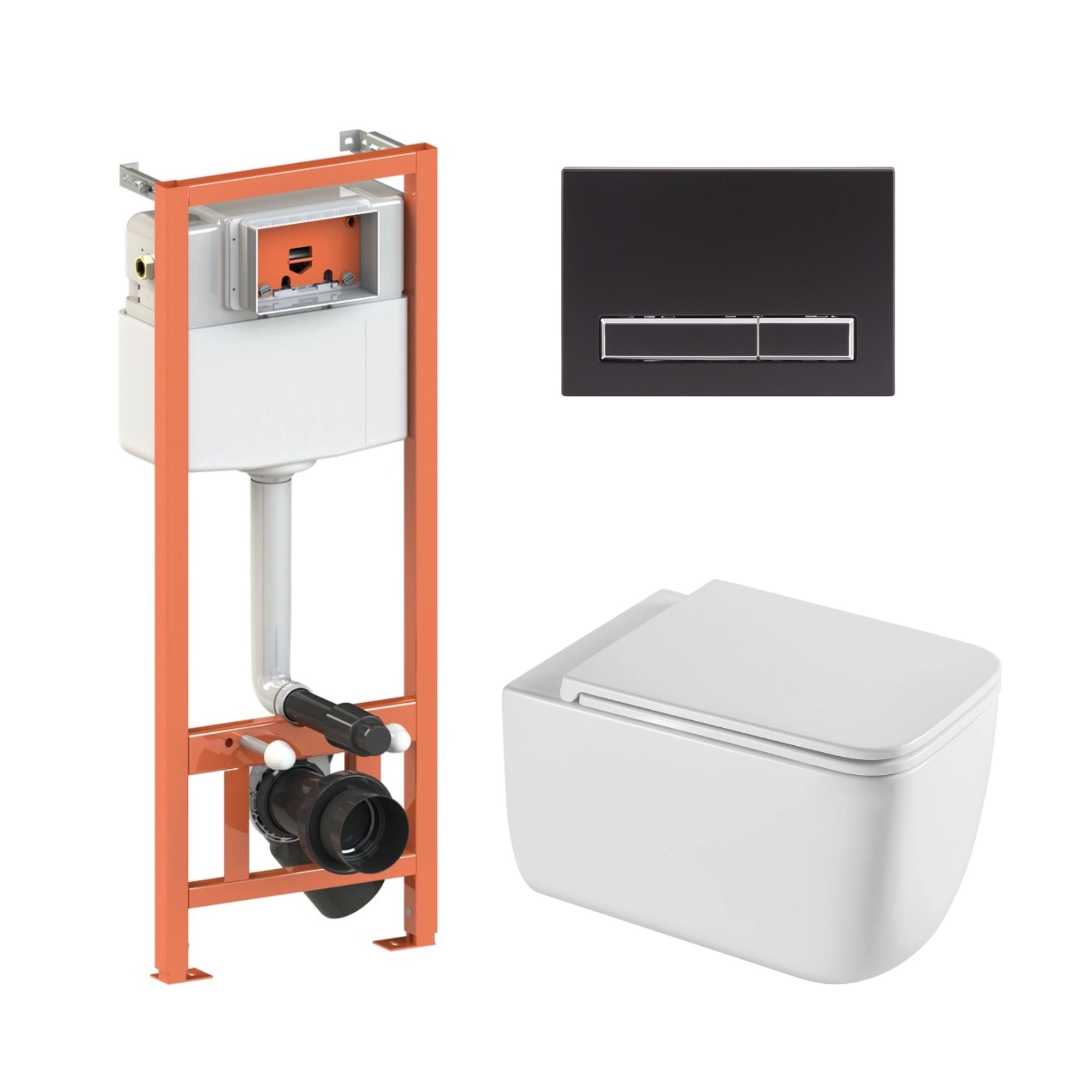Комплект для ванної кімнати Qtap QT2533076EUQMB46170, що включає інсталяцію, унітаз і клавішу змиву,..