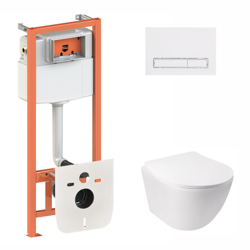 Комплект для ванної кімнати Qtap QT07335175W48201, що містить інсталяцію, унітаз і клавішу змиву, - ..