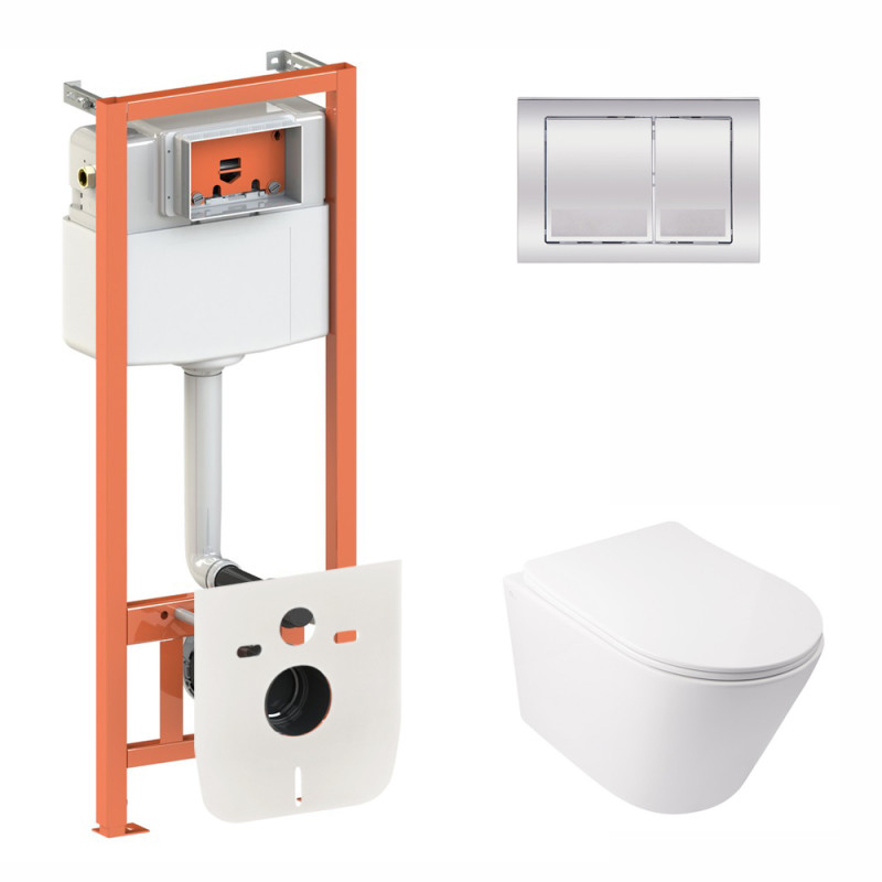 Комплект для ванної кімнати Qtap QT16335178W0133M425M06028CRM, що включає інсталяцію, унітаз і клаві..