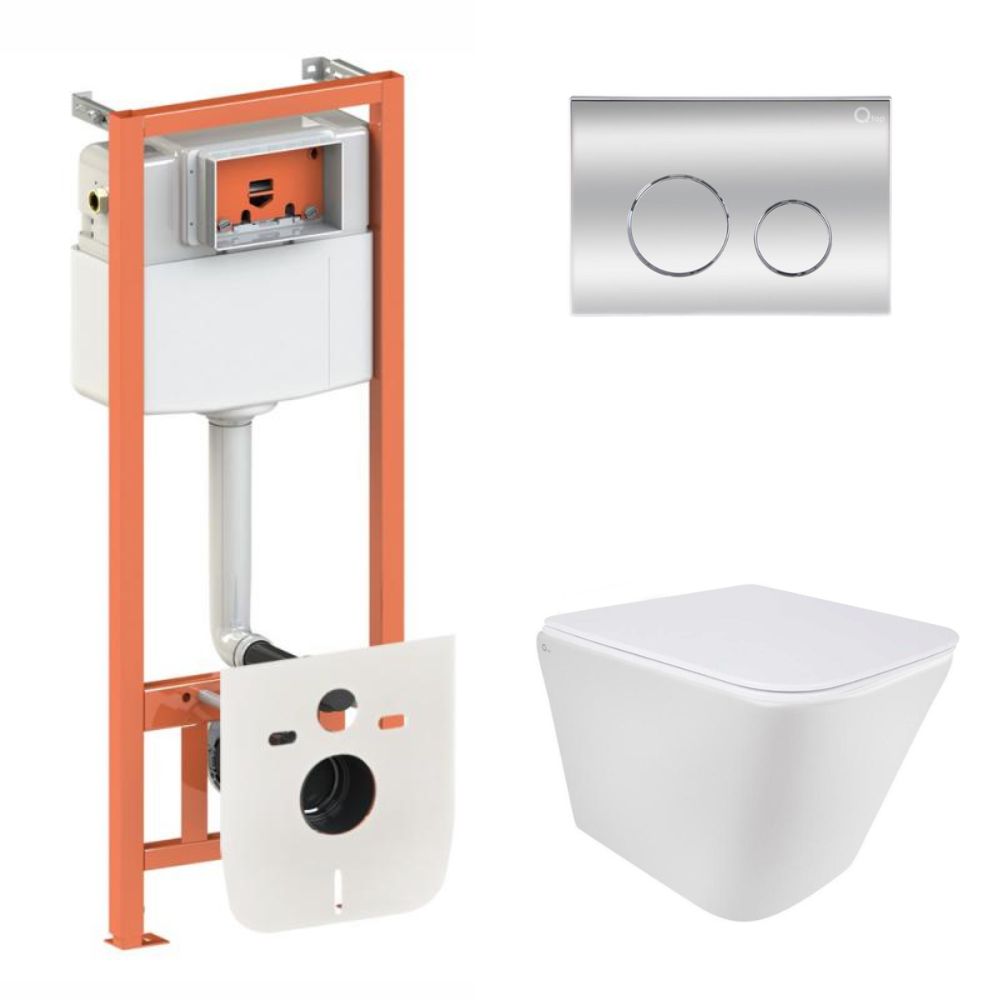 Комплект для ванної кімнати Qtap QT1733052ERW0133M425M06028CRM, що включає інсталяцію, унітаз і клав..