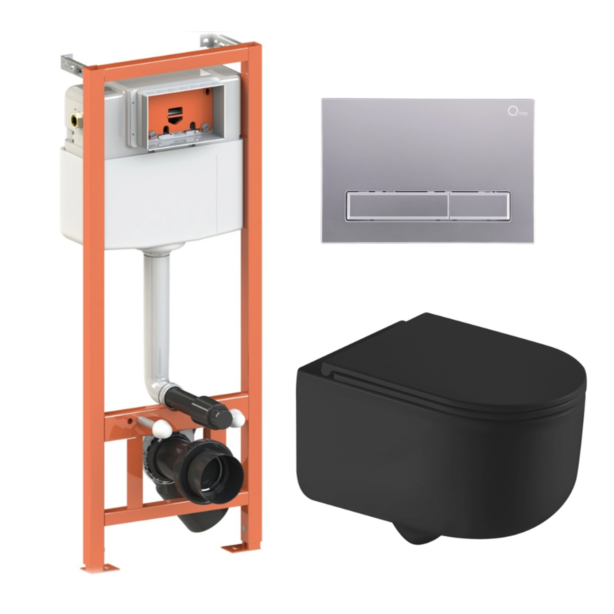 Комплект для ванної кімнати Qtap QT2433084EUQMB46180, що включає інсталяцію, унітаз і клавішу змиву,..