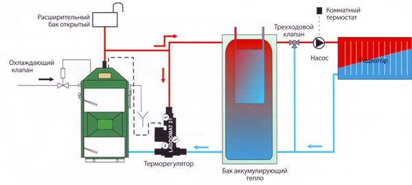 подключается к системам отопления вместе с котлами для работы на твердом топливе и накопительными резервуарами.