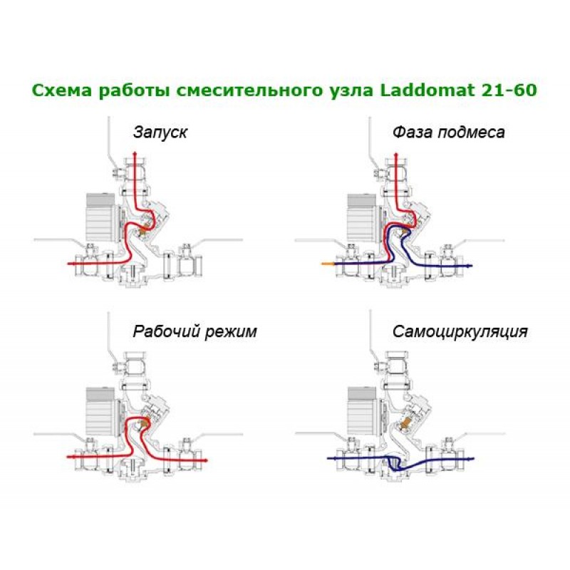 Термосмесительный узел LADOMAT является одним из важнейших устройств для обвязки твердотопливного котла и теплоакуммулятора. Ladomat (Ладомат) способствует поддержанию постоянной температуре в теплообменнике твердотопливного котла при нагреве теплоакуммулирующей ёмкости, тем самым сокращает выделение конденсата на стенках топочной камеры твердотопливного котла, и соответственно увеличивает срок эксплуатации котла. Ведь конденсат при соединении с серой, которая выделяется при горении образовывает кислотную среду, которая постепенно уничтожает стенки теплообменника твердотопливного котла.