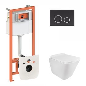 Комплект для ванної кімнати Qtap QT2433084EUQMB46179, що включає інсталяцію, унітаз і клавішу змиву,..