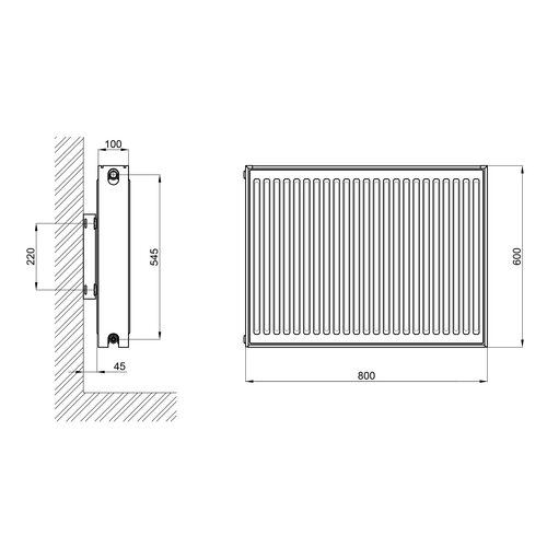 Радіатор сталевий Thermo Alliance 22 тип 600×800 мм з боковим підключенням (арт. TA22600800K) — панельний радіатор з двома панелями та двома конвекторами, призначений для настінного монтажу в автономних системах опалення. Тепловіддача — 1743 Вт. Радіатор витримує температуру до 95 °C і тиск до 10 бар. Товщина сталі — 1,2 мм. У комплекті — кран Маєвського, заглушка та комплект кронштейнів для настінного кріплення.