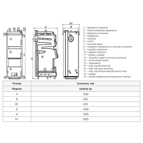 Котел твердопаливний сталевий Thermo Alliance Vulcan Plus V 4.0 VPSFW 50
