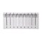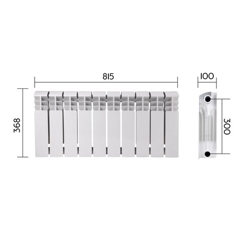 Радіатор біметалевий Thermo Alliance серії Bi-Ferrum 300×100 мм (10 секцій) — надійний секційний радіатор з боковим підключенням (арт. F300100B), призначений для роботи при тиску до 30 бар і температурі від 20 до 110 °C. Вага однієї секції — 1,15 кг, теплова потужність — 145 Вт. Загальна потужність комплекту з 10 секцій — 1450 Вт. Міжосьова відстань — 300 мм. Виготовлений із біметалу, товщина сталевої трубки — 2 мм.
