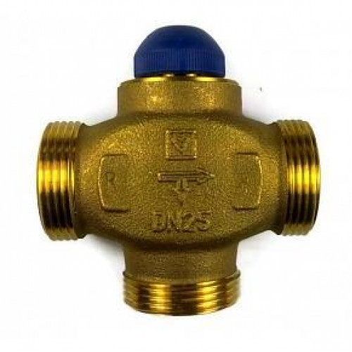 Трехходовой распределительный клапан для систем отопления и охлажденияКлапан с высокой пропускной способностью. Для монтажа на трубопроводе требуются резьбовые переходники с плоской прокладкой 622064.Функция:Трехходовой термостатический клапан HERZ Calis-TS-RD используется в качестве переключающего термостатического клапана, для поддержания температуры воздуха или температуры среды в замкнутых системах тепло- и холодоснабжения с приблизительно постоянным объемным расходом. В открытом состоянии трехходовой термостатический клапан работает на проток; если клапан закрыт, с помощью термостатической головки или термоэлектропривода, то проток закрыт, байпас открыт.Исполнениe:Корпус клапана из латуни, шпиндели из нержавеющей стали, уплотнение EPDM, модели DN 15 и DN 20 в никелированном исполнении, модели DN 25 и DN 32 полированная латунь. Все модели клапана Calis-TS-RD поставляются с синим защитным колпачком. Присоединения для труб в объем поставки не входят. Резьба для присоединения привода М 28х1,5.Монтаж должен осуществляться по направлению потока, который обозначен стрелками на корпусе клапана.Эксплуатационные параметры:Макс . рабочая температура: - 120 °CМин . рабочая температура: +2 °CМакс . рабочее давление DN 15, 20: 10 барМакс . рабочее давление DN 25, 32: 16 барМакс . перепад давления на клапане при работе в термостатическом режиме 0,2 барВ качестве антифризов допускается использование водных растворов этилен- и пропиленгликоля с объемной концентрацией 15-45% с ингибиторами коррозии.Макс. рабочее значение температуры и давления, при применении компрессионных фитингов ГЕРЦ для калиброванных мягких стальных и медных труб должно соответствовать требованиям EN 1254-2:1998; для металлополимерных труб соответствовать рекомендациям производителя.Для регулирования можно использовать все термостатические головки с накладным датчиком и датчиком в погружной гильзе, а также электронные регуляторы ГЕРЦ-RTC (с термоэлектроприводами DDC) и ГЕРЦ-RTR (с термоэлектроприводами). Чтобы избежать образование отложений, шпиндель в верхней части клапана защищен вторым уплотнительным кольцом. В качестве уплотнения шпинделя служит O-Ring уплотнение одно или два (для DN 25 и DN 32), которые находятся в латунной втулке. Втулку можно заменить во время эксплуатации системы. Уплотнительные кольца обеспечивают простоту в обслуживании и легкость хода шпинделя клапана.