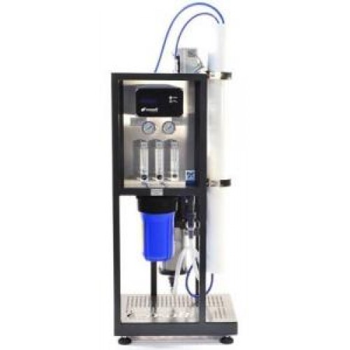 Назначение: очистка воды в загородных домах, кафе, ресторанах, лабораториях, а также в промышленности для малых технологических процессов.Система представляет собой современный компактный функционально законченный модуль, отвечающий всем требованиям эффективности, компактности и эргономичности.Принцип работы системы традиционный для обратноосмотических установок и заключается в разделении исходной воды полупроницаемой мембраной на два потока: очищенную воду — пермеат и воду с повышенным содержанием примесей — концентрат, который сбрасывается в канализацию.В системах данного типа применяется техническое решения по рециклу концентрата, что позволяет существенно снизить сброс сточных вод и увеличить выход очищенной воды. Использование высокоэффективных мембранных элементов Filmtec XLE-4040 (Dow Chemical) позволяет регулировать КПД системы по пермеату в зависимости от качества исходной воды и тем самым достигать максимального его увеличения (50-75%) без угрозы для эксплуатационных свойств мембран.Стабильная и энергоэффективная работа установки обратного осмоса Ecosoft MO обеспечивается центробежным насосом высокого давления Grundfos, характеризующимся более низким энергопотреблением.Использование современного контроллера обеспечивает полную автоматизацию работы установки. Кроме того, в базовую модель установки включен датчик электропроводности пермеата, что позволяет непрерывно контролировать качество очищенной воды.Компактное исполнение системы и специально разработанная панель подключений существенно упрощает транспортирование, монтаж и обслуживание установки. А использование пластичных соединительных трубок обеспечивает значительное снижение вибраций и уровня шума, создаваемых насосом высокого давления при эксплуатации установки.